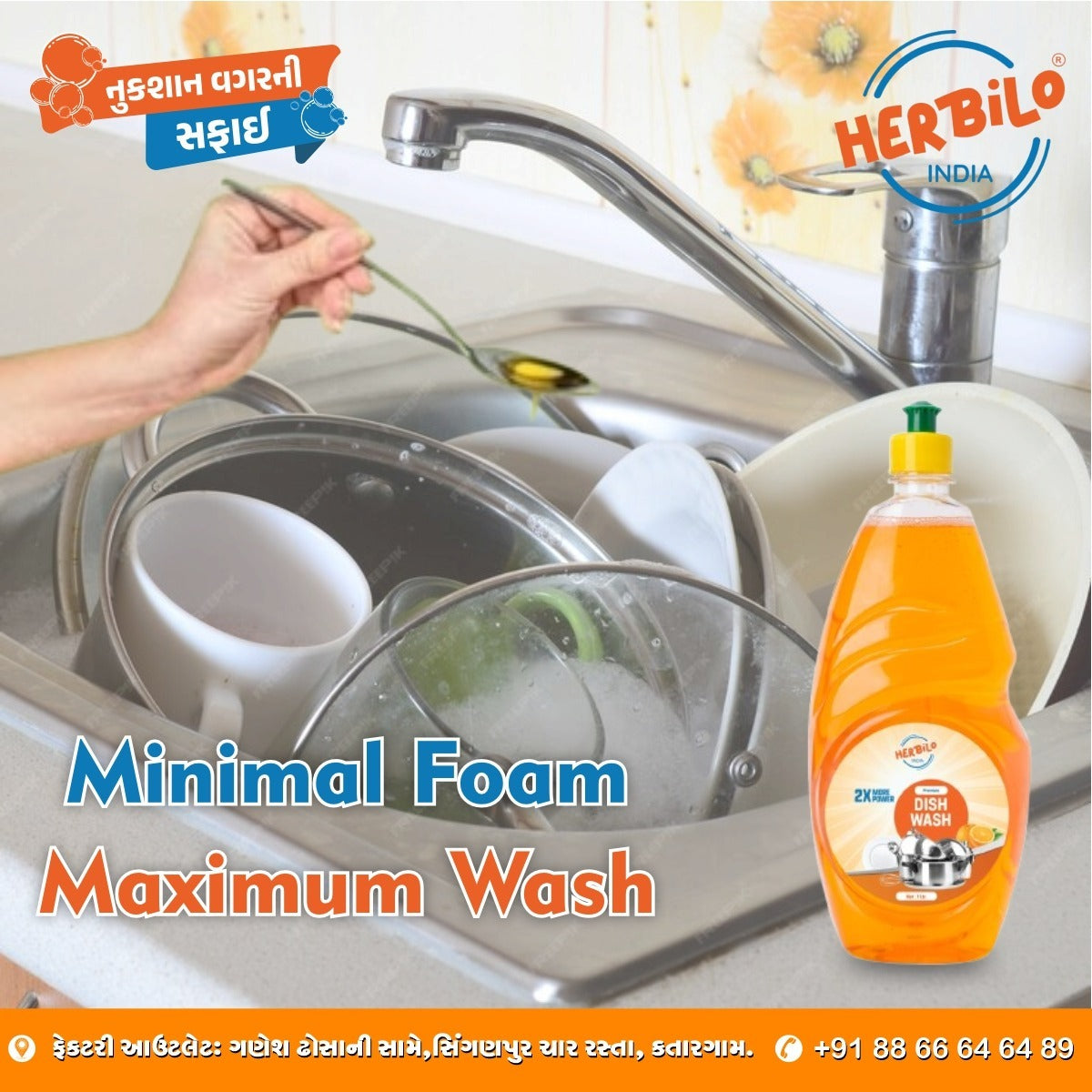 Just a small amount of Herbilo Dish Wash Gel is enough to clean all your utensils effectively. The concentrated formula ensures you use less product while achieving better results.